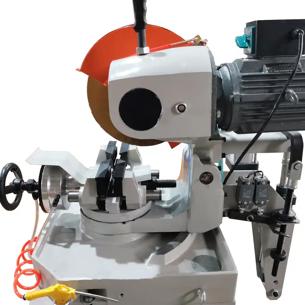 ਵਾਯੂਮੈਟਿਕ ਸਰਕੂਲਰ ਆਰਾ ਕੱਟਣ ਵਾਲੀ ਮਸ਼ੀਨ ਇੱਕ ਵਿਸ਼ੇਸ਼ ਉਪਕਰਣ ਹੈ ਜੋ ਮੈਟਲ ਪਾਈਪਾਂ ਦੀ ਸਹੀ ਅਤੇ ਕੁਸ਼ਲ ਕਟਾਈ ਲਈ ਕੰਮ ਕਰਦਾ ਹੈ। ਇਹ ਹਾਈ-ਸਪੀਡ ਸਟੀਲ ਦੇ ਬਣੇ ਗੋਲਾਕਾਰ ਆਰੇ ਬਲੇਡ ਨਾਲ ਪਾਈਪ ਨੂੰ ਕੱਟਦਾ ਹੈ। ਮਸ਼ੀਨ ਵੱਖ-ਵੱਖ ਸਮੱਗਰੀਆਂ ਜਿਵੇਂ ਕਿ ਲੋਹੇ, ਸਟੀਲ, ਤਾਂਬਾ, ਐਲੂਮੀਨੀਅਮ, ਆਦਿ ਵਰਗੀਆਂ ਧਾਤ ਦੀਆਂ ਪਾਈਪਾਂ ਨੂੰ ਕੱਟਣ ਦਾ ਕੰਮ ਹੈ, ਅਤੇ ਠੋਸ ਬਾਰਾਂ ਨੂੰ ਵੀ ਕੱਟ ਸਕਦੀ ਹੈ। ਮਸ਼ੀਨ ਆਰਾ ਬਲੇਡ ਨੂੰ ਫੀਡ ਕਰਨ ਲਈ ਇੱਕ ਏਅਰ-ਹਾਈਡ੍ਰੌਲਿਕ ਪ੍ਰੈਸ਼ਰਾਈਜ਼ਡ ਸਿਲੰਡਰ ਨੂੰ ਅਪਣਾਉਂਦੀ ਹੈ, ਅਤੇ ਫੀਡ ਦੀ ਗਤੀ ਵਿਵਸਥਿਤ ਹੁੰਦੀ ਹੈ। ਯੂਨਿਟ ਇੱਕ ਨਯੂਮੈਟਿਕ ਵਾਈਜ਼ ਨਾਲ ਲੈਸ ਹੈ ਜੋ ਕੱਟ ਦੇ ਦੌਰਾਨ ਪਾਈਪ ਨੂੰ ਮਜ਼ਬੂਤੀ ਨਾਲ ਰੱਖਦਾ ਹੈ, ਕੱਟ ਦੇ ਦੌਰਾਨ ਸਮੱਗਰੀ ਨੂੰ ਹਿੱਲਣ ਤੋਂ ਰੋਕਦਾ ਹੈ, ਜਦੋਂ ਕਿ ਆਰਾ ਬਲੇਡ ਨੂੰ ਟੁੱਟਣ ਤੋਂ ਬਚਾਉਂਦਾ ਹੈ।